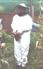 Pauls long suffering Girlfriend in full beekeeping gear: